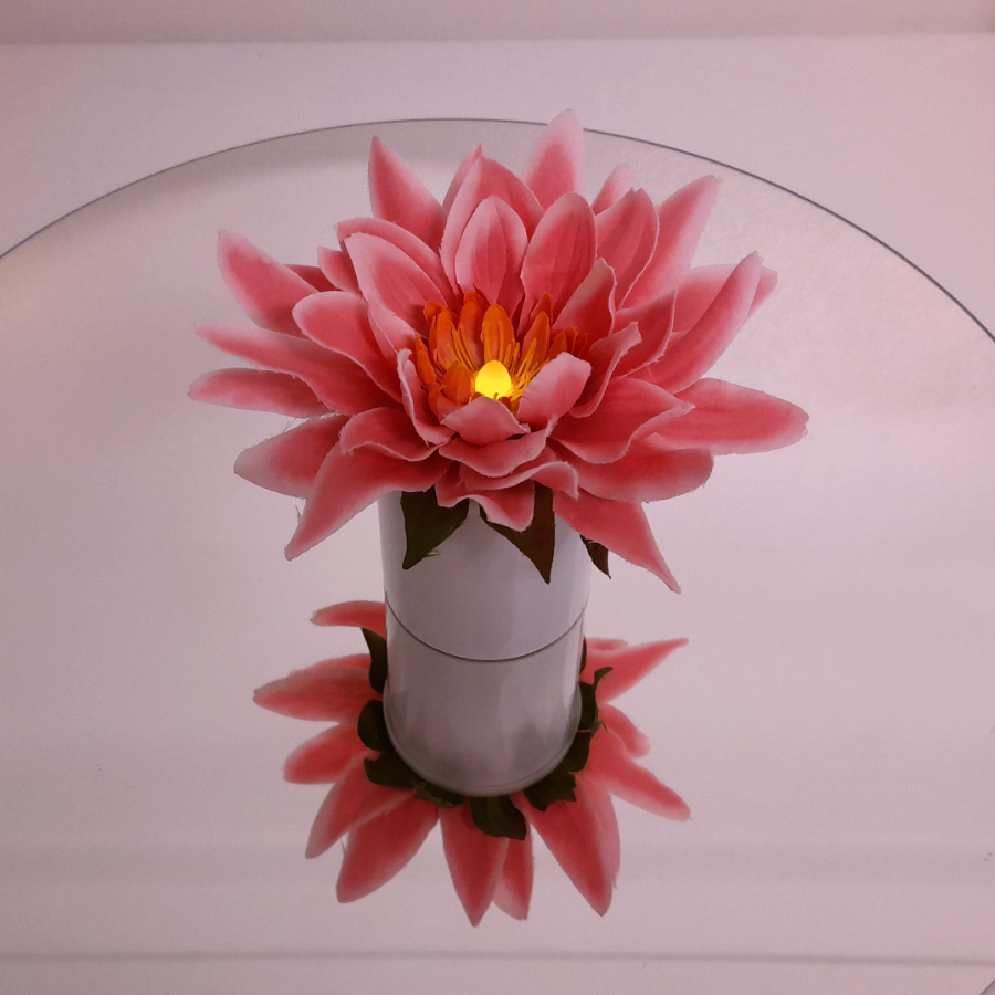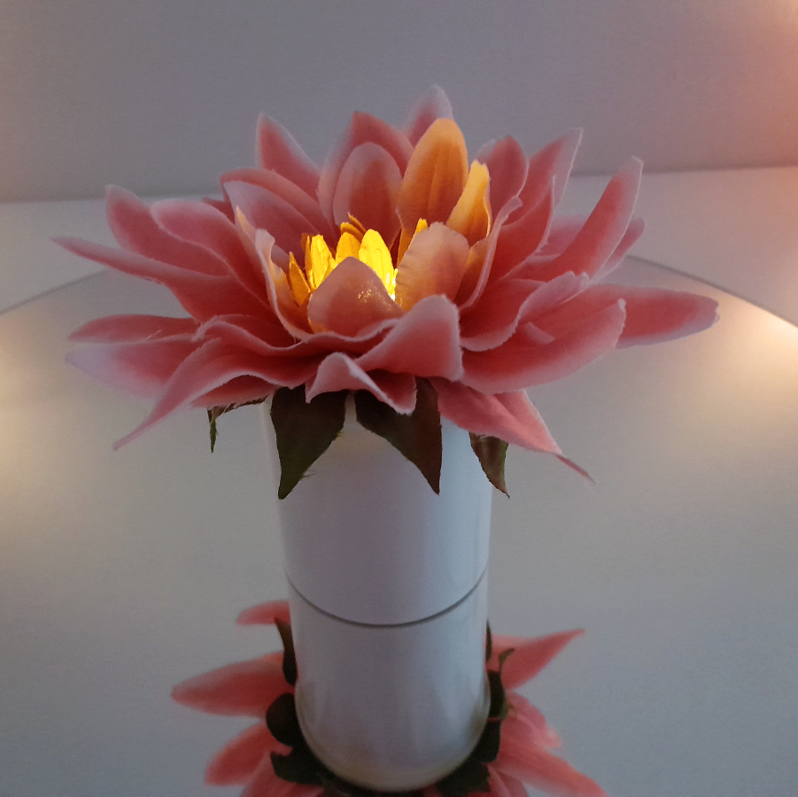 Loistava ystävänpäivälahjaksi! Valokukka on terveellinen, uniikki ja ekologinen vaihtoehto tavalliselle kynttilälle. Valokukka on tekokukan ja led- hautakynttilän yhdistelmä. Kestää pakkasta ja sen voi laittaa myös pihalle esimerkiksi lyhtyyn.