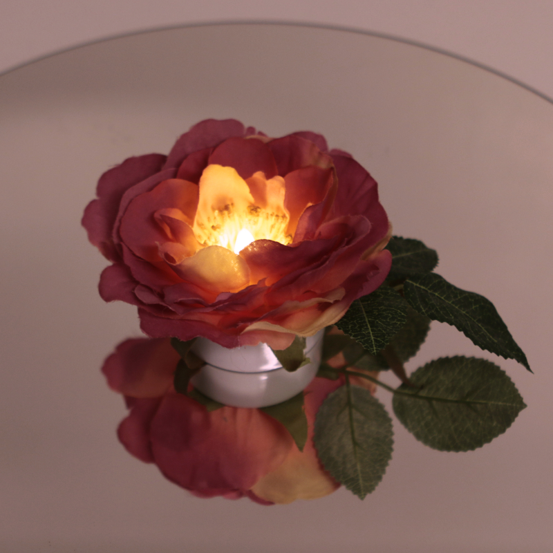 Valokukka on kaunis tunnelmavalo hämärään iltaan. Vaaleanpunainen tekokukkaruusu yhdistettynä led- kynttilään. Sisältää ajastimen ja kaksi AAA paristoa. Tämä on tarkoitettu sisätiloihin.